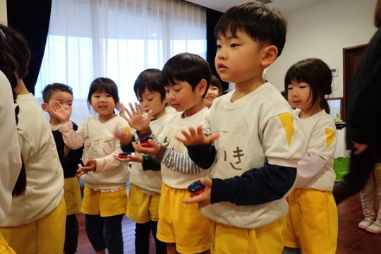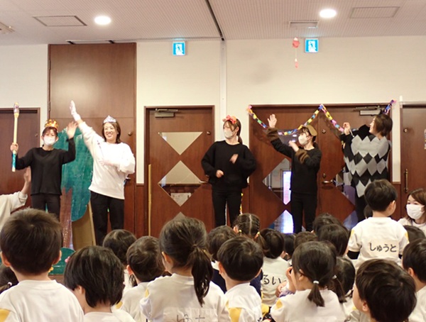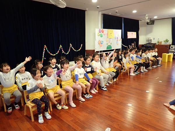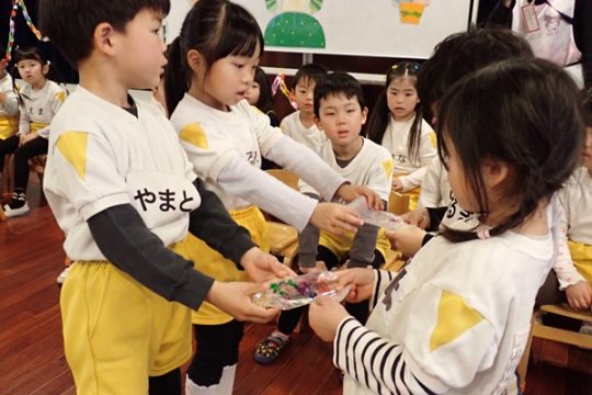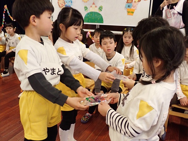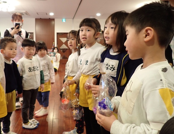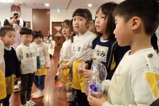 3月6日(金)に2歳児から5歳児の子どもたちが参加して「お別れ会」がありました。4歳児の子達が準備から当日の進行までしてくれて、緊張している様子も見られましたが、一生懸命な姿がかっこよかったです。年長さんもプレゼントや歌を歌ってもらえて、とても嬉しそうでした。