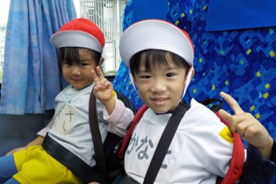 帰りのバスの中では、ぐっすりかなと思っていたのですがまだまだ元気な子どもたちでした。思いっきり楽しんだ秋の遠足となりました。
