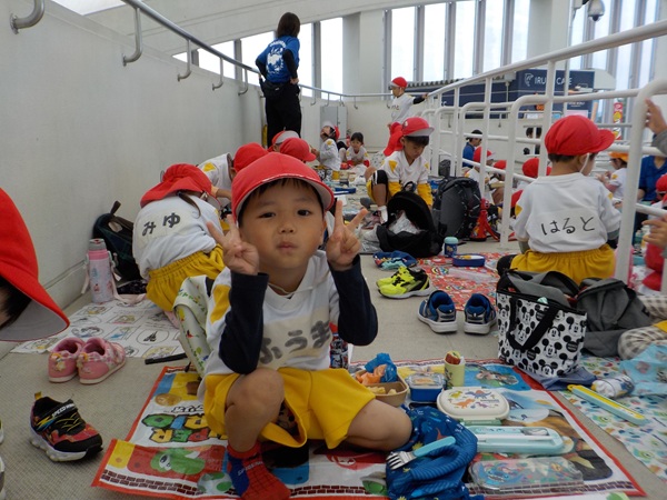 10/22(水)に大きなバスに乗って遠足へ行きました。海の中道海浜公園へ行く予定でしたが、空模様は曇り。パラっと雨も降っていたので、雨の日案の「マリンワールド」へ変更となりました。 どちらの目的地も子どもたちも楽しみでしたので、にこにこの笑顔は変わらずたくさん見ることができました。