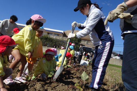 芋の苗植え同様に、保護者会の役員さんもお手伝いにきてくださり、大きなスコップで子ども達の為にと一生懸命掘ってくださいました。一緒に活動できて嬉しかったです。ありがとうございました。