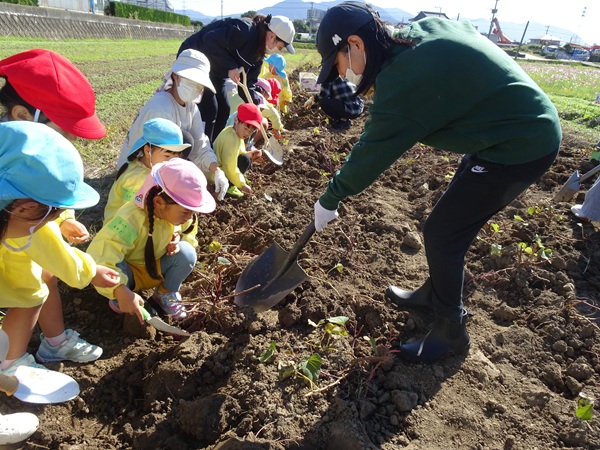 芋の苗植え同様に、保護者会の役員さんもお手伝いにきてくださり、大きなスコップで子ども達の為にと一生懸命掘ってくださいました。一緒に活動できて嬉しかったです。ありがとうございました。